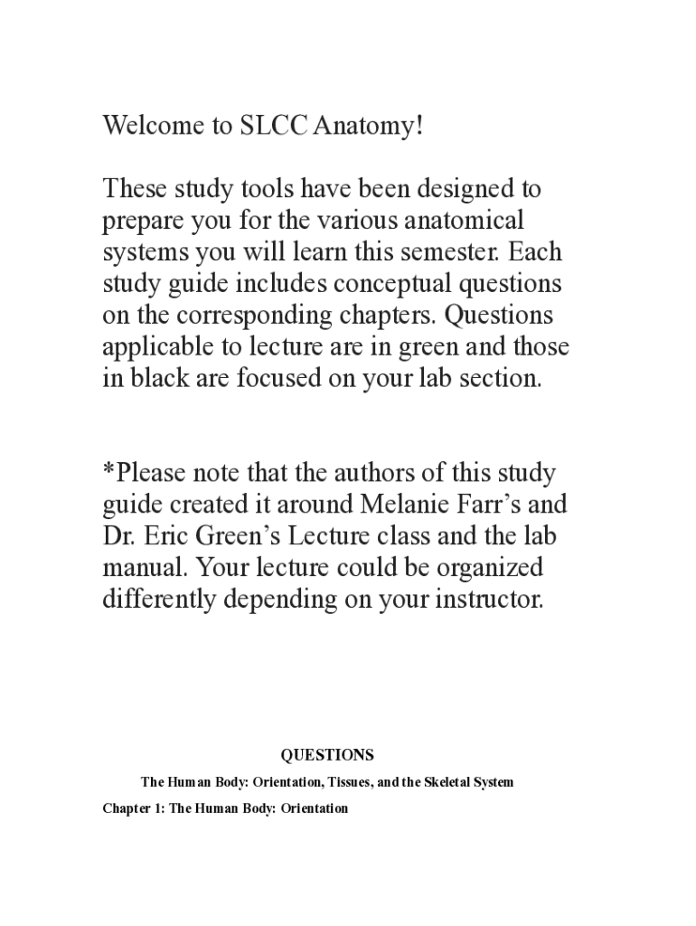 Welcome to SLCC Anatomy! These study tools have been designed to prepare you for the various anatomical systems you will learn this semester. Each study guide includes conceptual questions on the