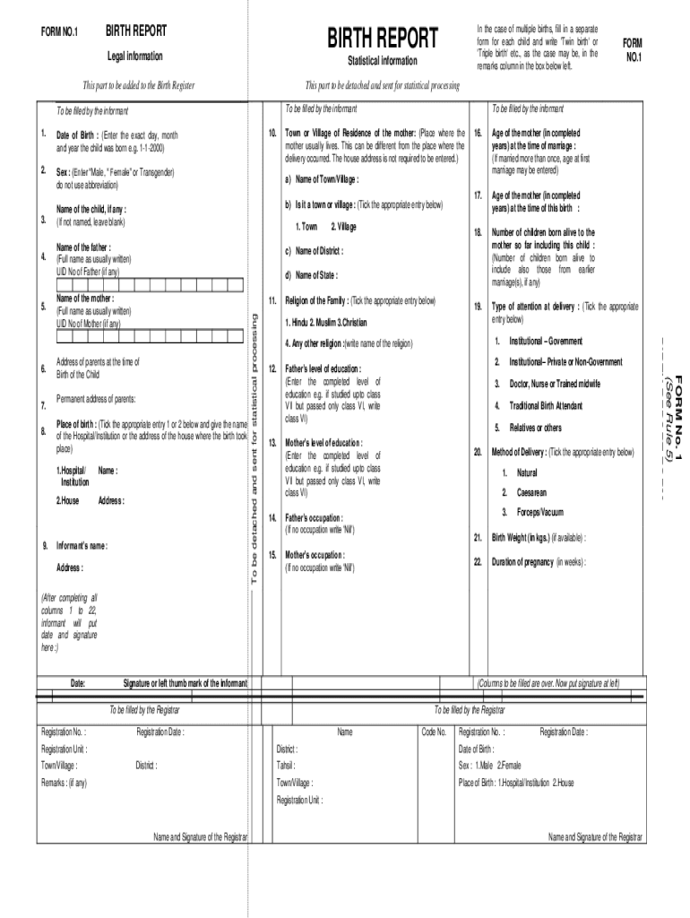 BIRTH REPORTFORM NO.1Legal informationStatistical informationThis part to be added to the Birth RegisterTo be filled by the informant1.Date of Birth : (Enter the exact day, month and year the child