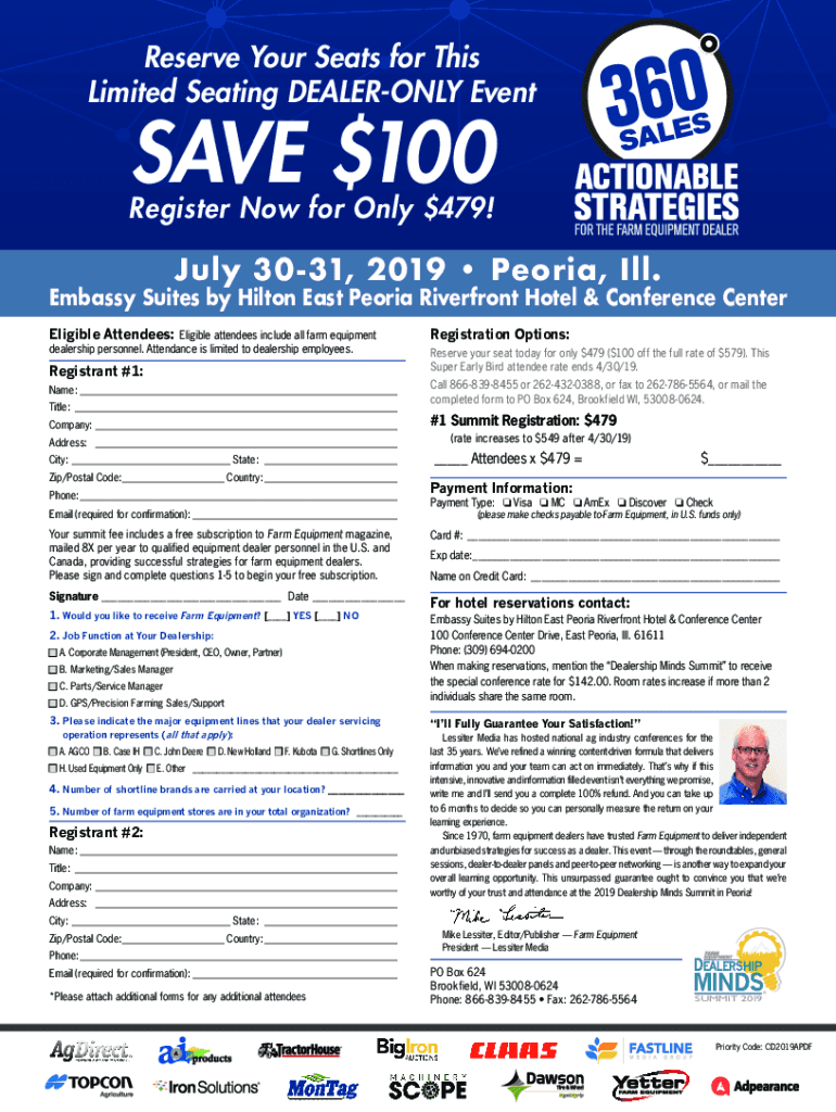 Reserve Your Seats for This Limited Seating DEALERONLY EventSAVE $100Register Now for Only $479!July 30 31, 2019 Peoria, Ill.Embassy Suites by Hilton East Peoria Riverfront Hotel & Conference Center
