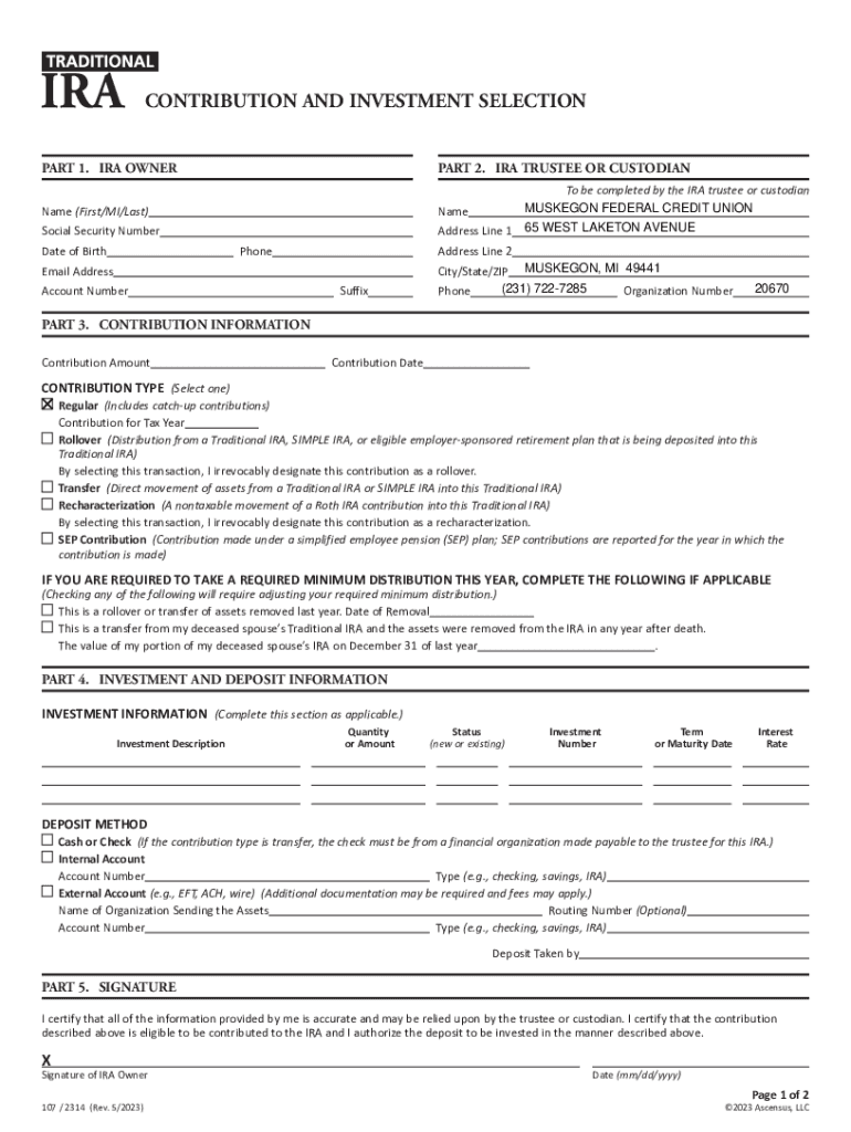 Traditional CONTRIBUTION AND INVESTMENT SELECTION