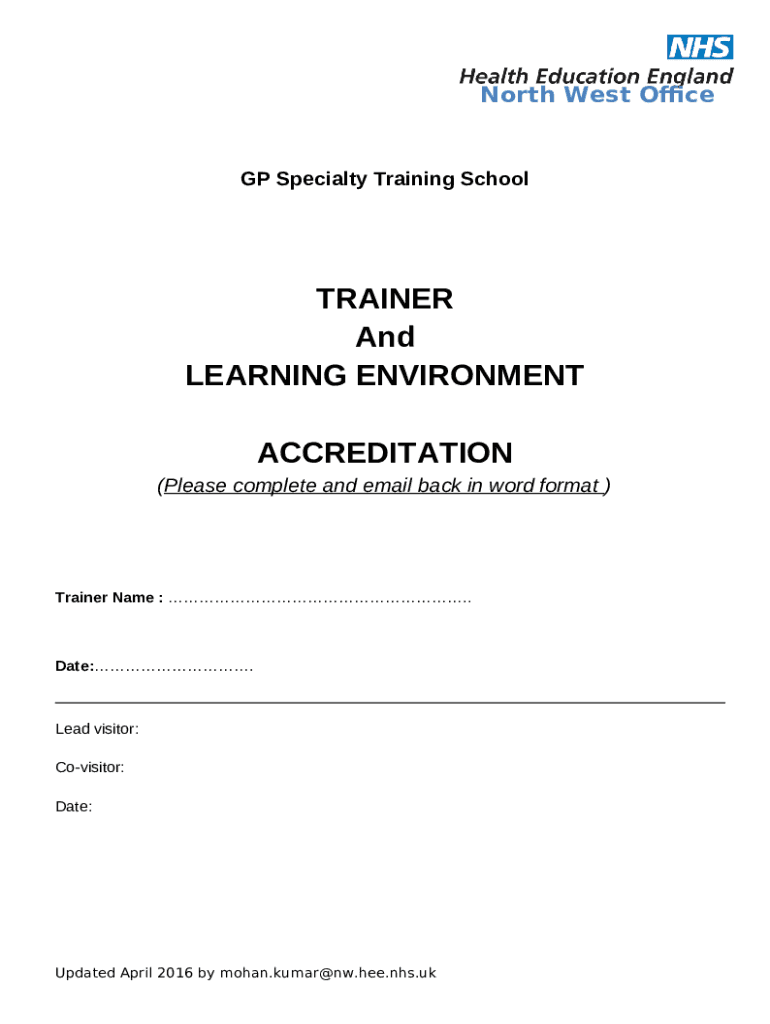 What is New Trainer Accreditation & Learning Environment ... Form?