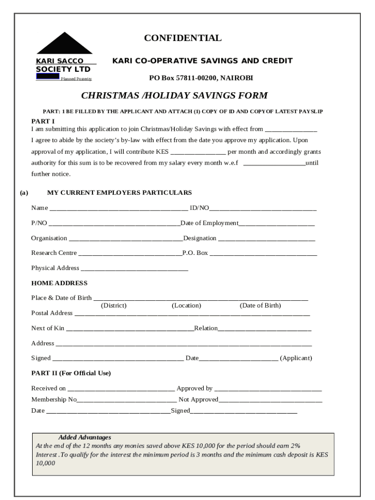 What is Christmas/Holiday Savings - KARI Sacco Form?