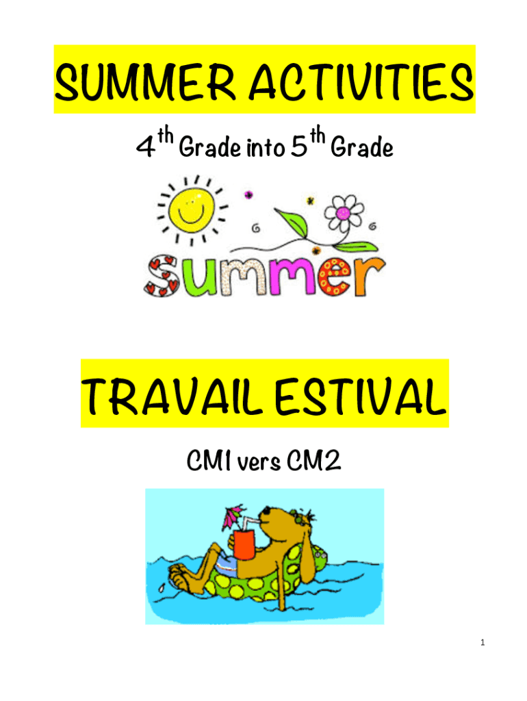 SUMMER ACTIVITIES thth4 Grade into 5 GradeTRAVAIL ESTIVAL CM1 vers CM21FRENCH INTERNATIONAL SCHOOL OF PHILADELPHIAChers parents,Le Travail Estival a t prpar afin dencourager nos lves maintenir leurapprentissage