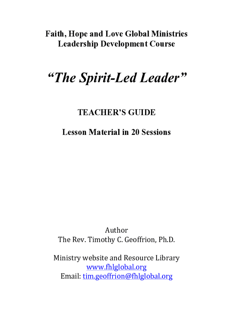 Get the free Spirit-Led Leader Teacher's Guide Geoffrion2014.docx. The Spirit-Led Leader