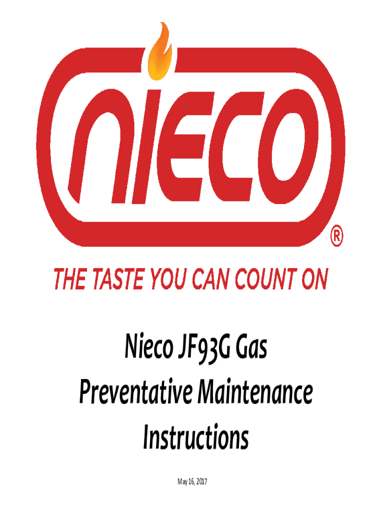 Get the free Nieco JF93G Gas Preventative Maintenance Instructions