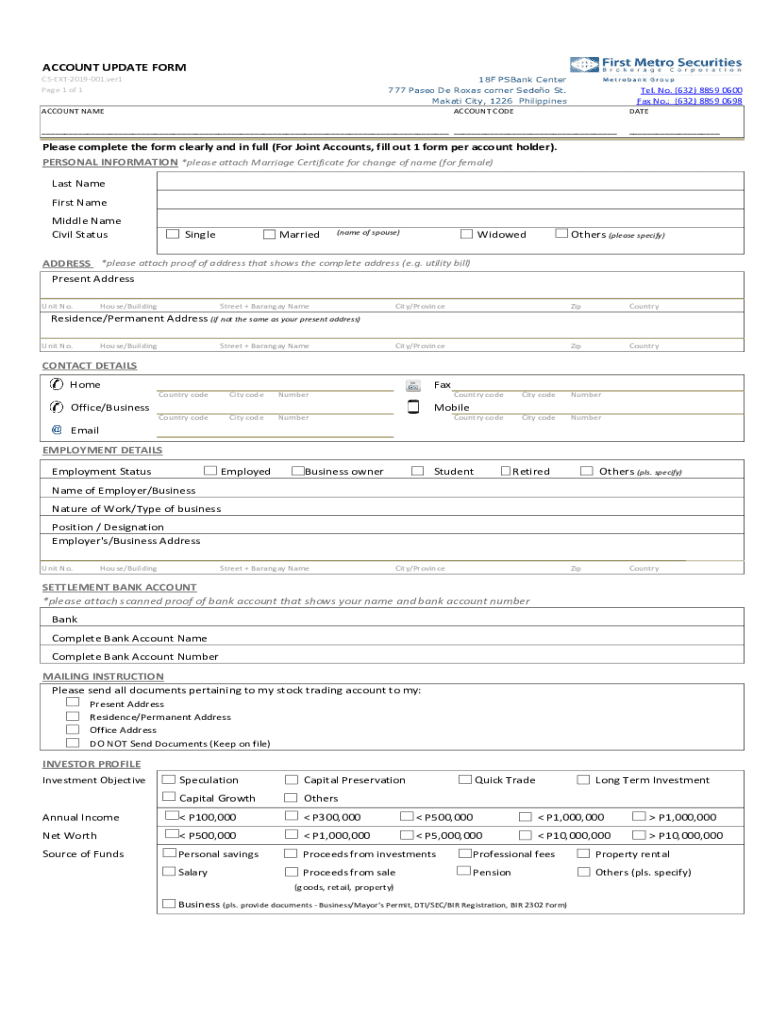 ACCOUNT UPDATE FORM 18F PSBank Center 777 Paseo De Roxas corner Sedeo St. Makati City, 1226 Philippines ACCOUNT CODECSEXT2019001.ver1 Page 1 of 1 ACCOUNT NAMETel. No. (632) 8859 0600 Fax No.: (632)