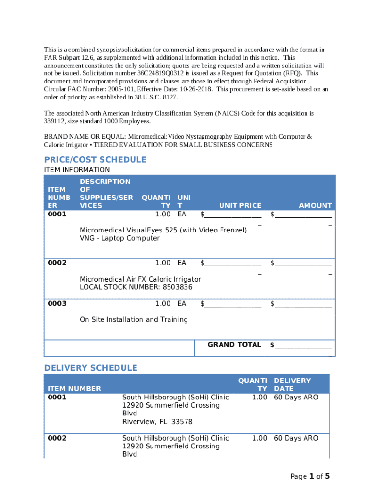 Template The associated North American Industry Classification System (NAICS) Code for this acquisition is 339112, size standard 1000 Employees instructions