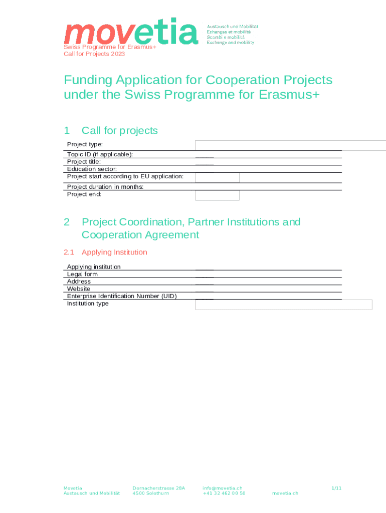 - Search for the Swiss Programme for Erasmus+: Higher education form in the Search box on the top of the main page.