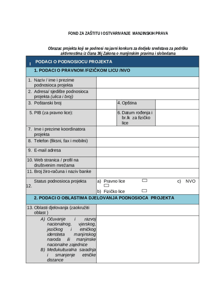 Instructions for the Fond za zatitu i ostvarivanje manjinskih prava Crne Gore form