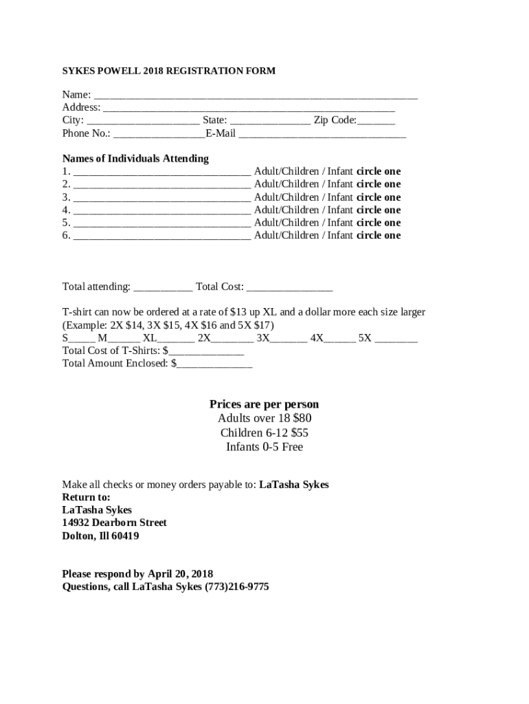 How to fill out Registration - Sykes & Powell 2018 Family Reunion