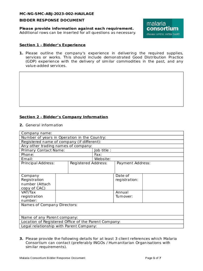 Instructions for the form ANNEXURE A: STANDARD BID DOCUMENTATION
