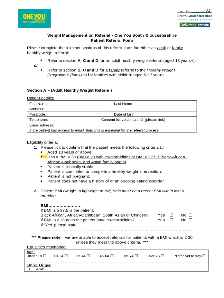 Healthy Lifestyles Service Referral template instructions