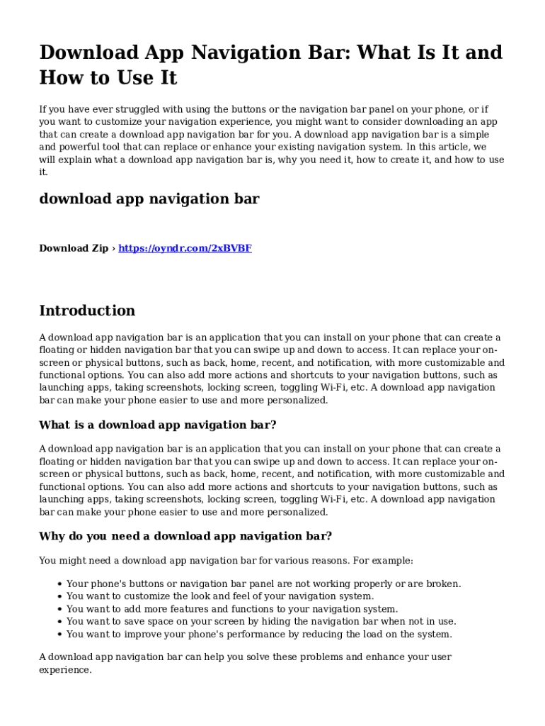 Download App Navigation Bar: What Is It and How to Use It If you have ever struggled with using the buttons or the navigation bar panel on your phone, or if you want to customize your navigation experience,