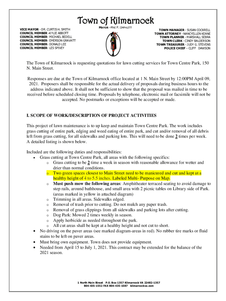 Town of Kilmarnock VICE MAYOR DR. CURTIS H. SMITH COUNCIL MEMBER KYLIE ABBOTT COUNCIL MEMBER MICHAEL BEDELL COUNCIL MEMBER EMERSON GRAVATT COUNCIL MEMBER DONALD LEE COUNCIL MEMBER LES SPIVEYMAYOR