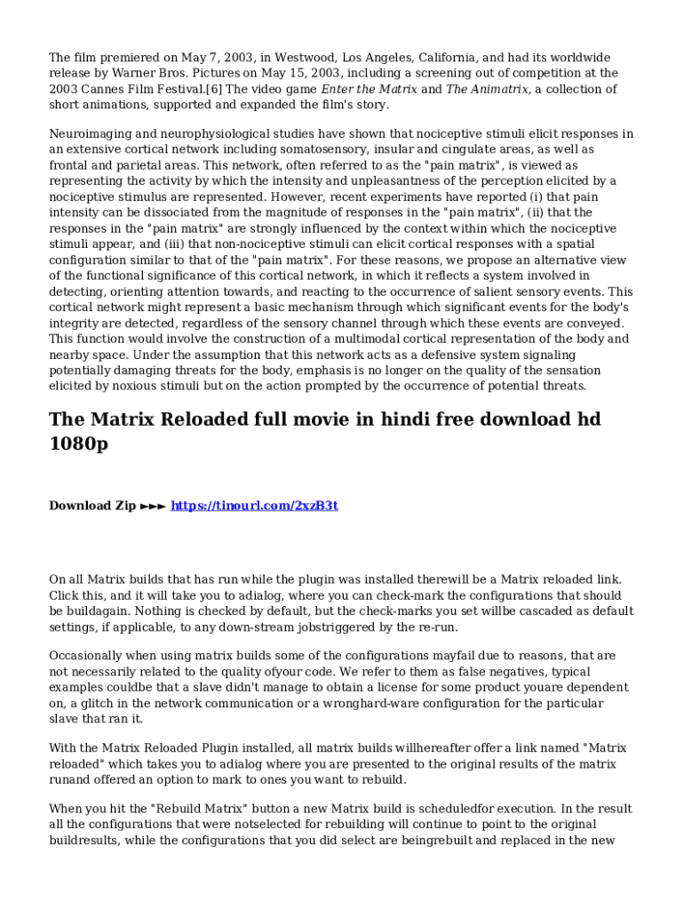 Fill out your form-matrix-reloaded-full-movie-in-hindi--download-hd online with pdfFiller!