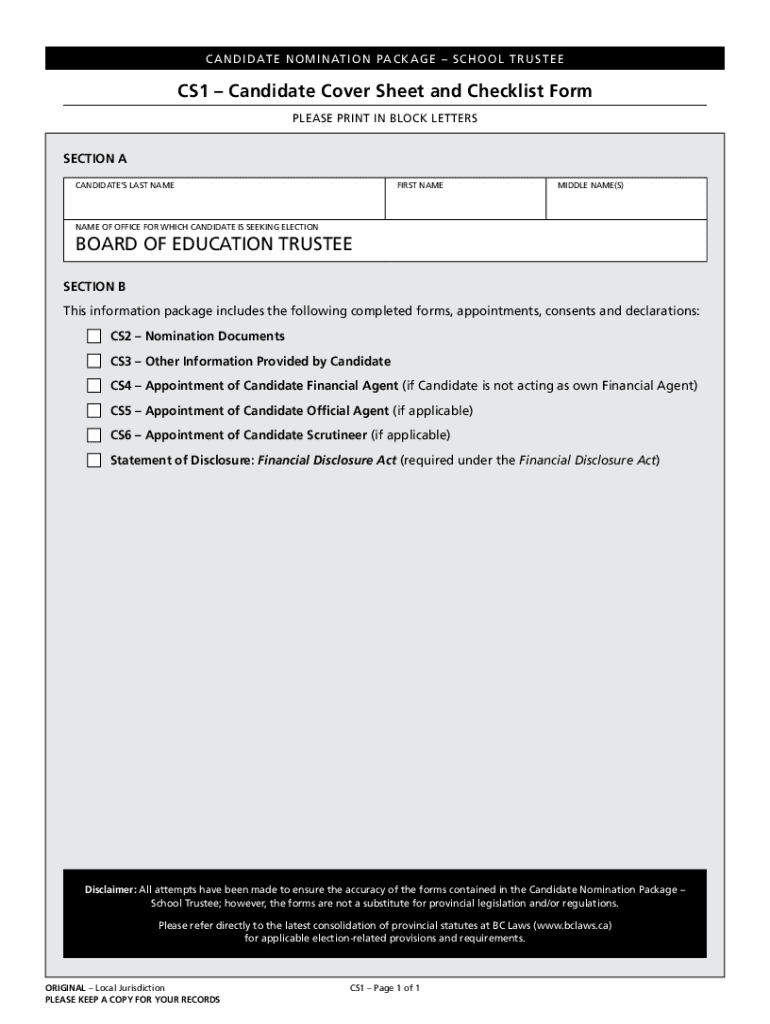460 Columbia Avenue Castlegar, BC V1N 1G7T 250 365 7227 F 250 365 4810info@castlegar.ca castlegar.ca2024 BYELECTION SCHOOL TRUSTEE NO. 20 ELECTOR AREA 2 CANDIDATE NOMINATION PACKAGE COVER SHEET Candidate