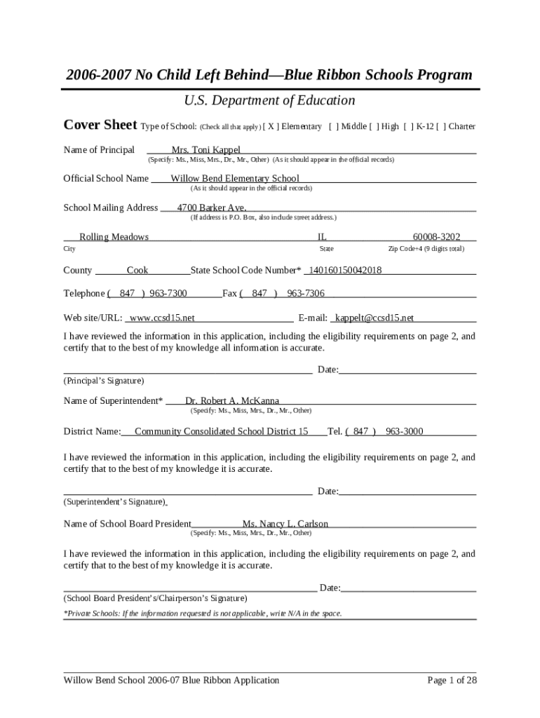 Frequently asked questions about the form Cover Sheet Type of School: (Check all that apply) X Elementary Middle High K-12 Charter - www2 ed