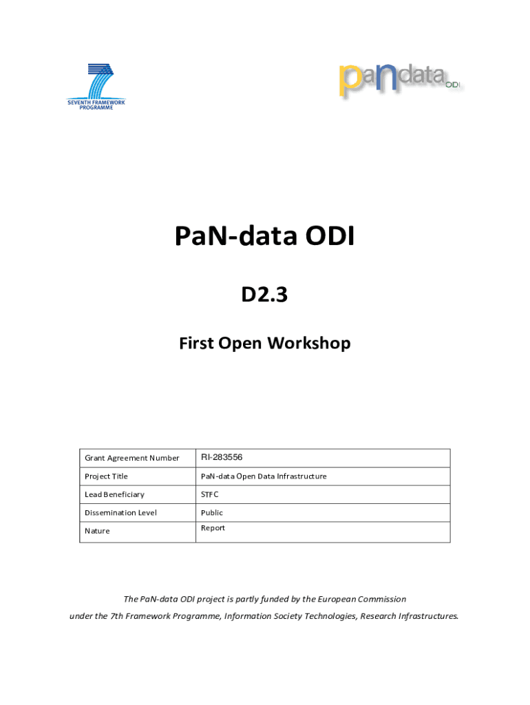 First Open Workshop Grant Agreement NumberRI283556Project TitlePaNdata Open Data InfrastructureLead BeneficiarySTFCDissemination LevelPublicNatureReportThe PaN data ODI project is