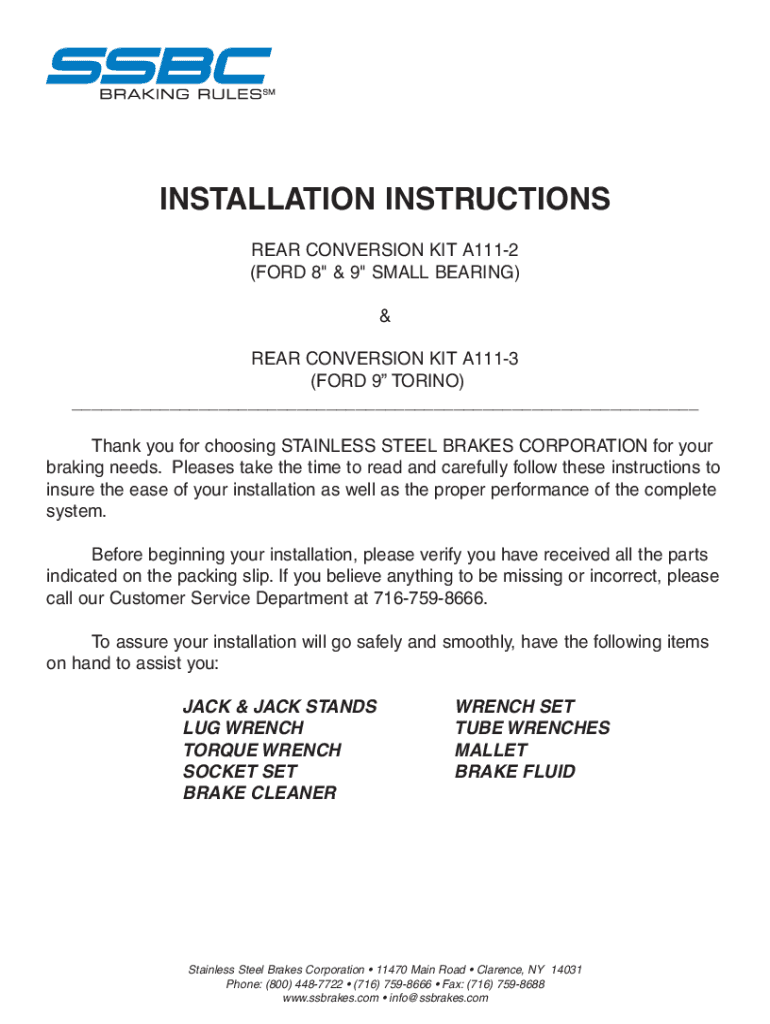 Thank you for choosing STAINLESS STEEL BRAKES CORPORATION for