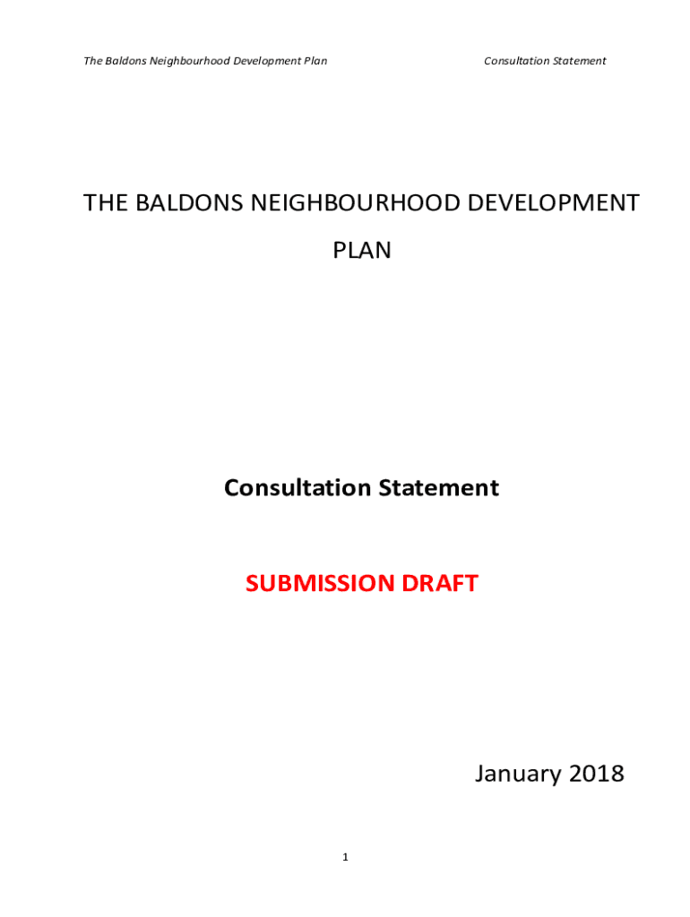 The Baldons Neighbourhood Development PlanConsultation StatementTHE BALDONS NEIGHBOURHOOD DEVELOPMENT PLANConsultation Statement SUBMISSION DRAFTJanuary 2018 1The Baldons Neighbourhood Development