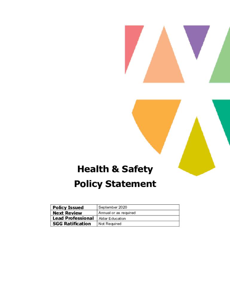 Health & Safety Policy Statement Policy Issued Next Review Lead Professional SGG RatificationSeptember 2020 Annual or as required Aldar Education Not RequiredOccupational Health & Saftey Company CommitmentAldar