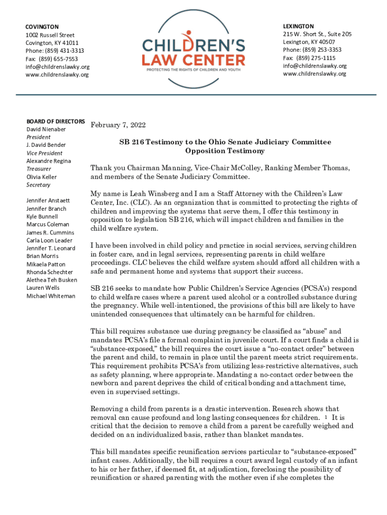 LEXINGTON 215 W. Short St., Suite 205 Lexington, KY 40507 Phone: (859) 2533353 Fax: (859) 2751115 info@childrenslawky.org www.childrenslawky.orgCOVINGTON 1002 Russell Street Covington, KY 41011 Phone: