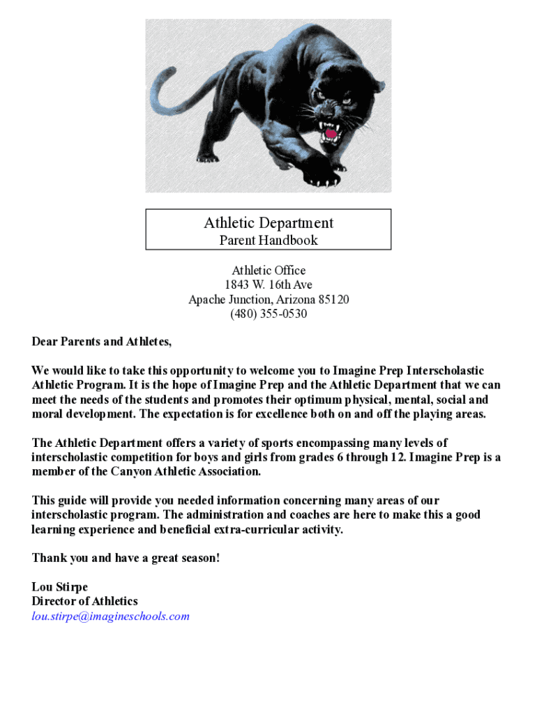 Parent HandbookAthletic Office 1843 W. 16th Ave Apache Junction, Arizona 85120 (480) 3550530 Dear Parents and Athletes, We would like to take this opportunity to welcome you to Imagine Prep Interscholastic