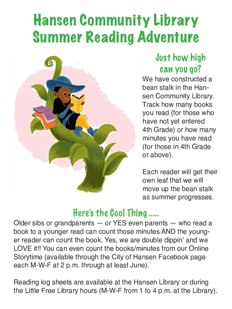 Get the free Hansen Community Library Summer Reading Adventure