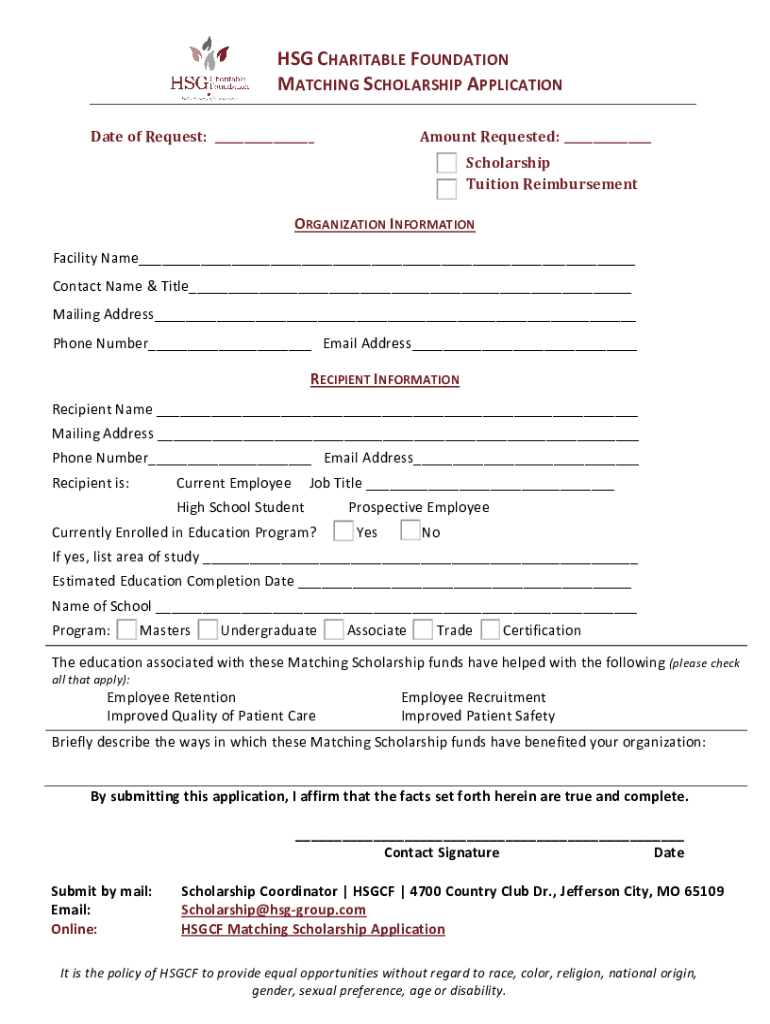 Fill out your hsgcf matching scholarship application online with pdfFiller!