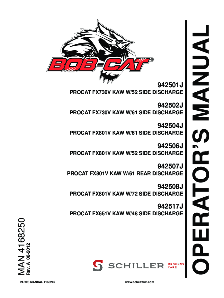 PROCAT FX730V KAW W/52 SIDE DISCHARGE942502J PROCAT FX730V KAW W/61 SIDE DISCHARGE942504J PROCAT FX801V KAW W/61 SIDE DISCHARGE942506J PROCAT FX801V KAW W/52 SIDE DISCHARGE942507J PROCAT FX801V KAW
