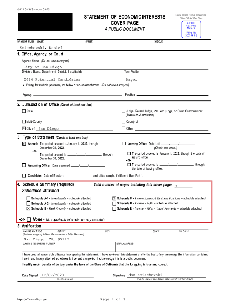 042100363PCH0363CALIFORNIA FORMSTATEMENT OF ECONOMIC INTERESTS COVER PAGE700FAIR POLITICAL PRACTICES COMMISSIONEFiled: 12/7/2023 14:47:49A PUBLIC DOCUMENTFiling ID: 300059188Please type or print in