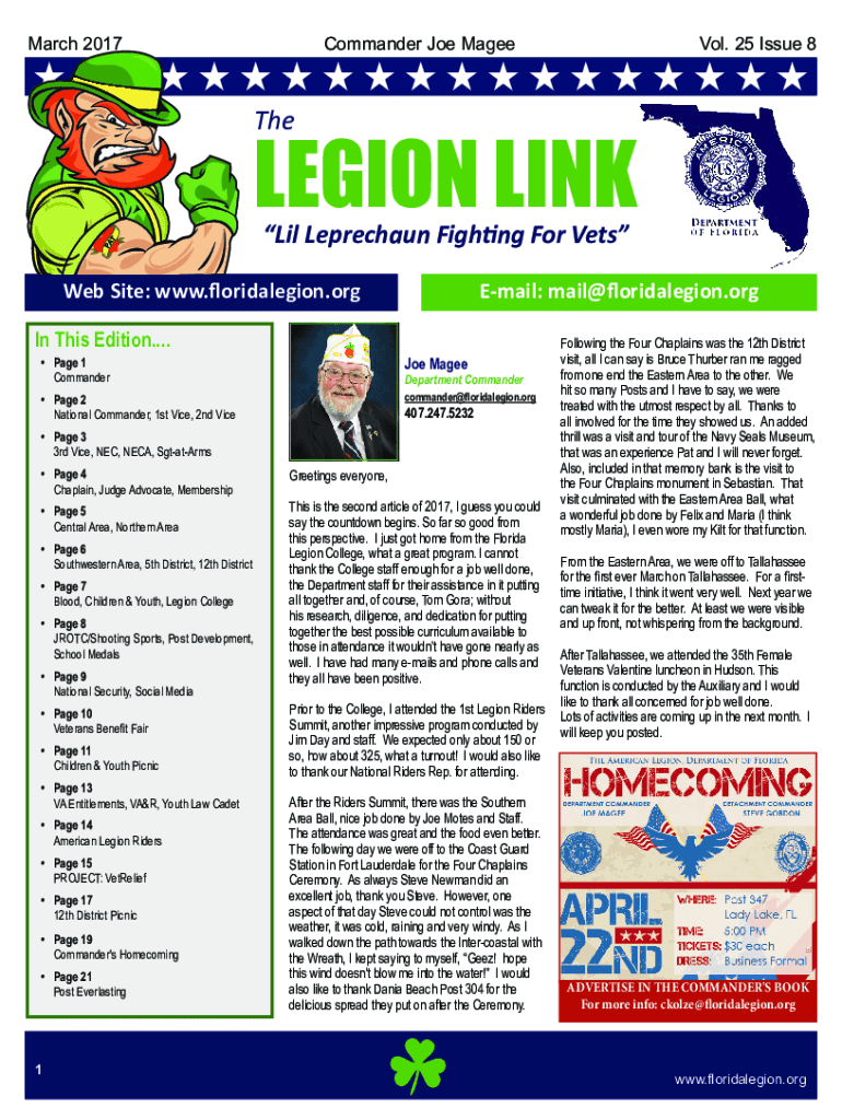 Little Leprechaun Fighting For Vets Web Site: www.floridalegion.orgEmail: mail@floridalegion.orgIn This Edition.... Joe