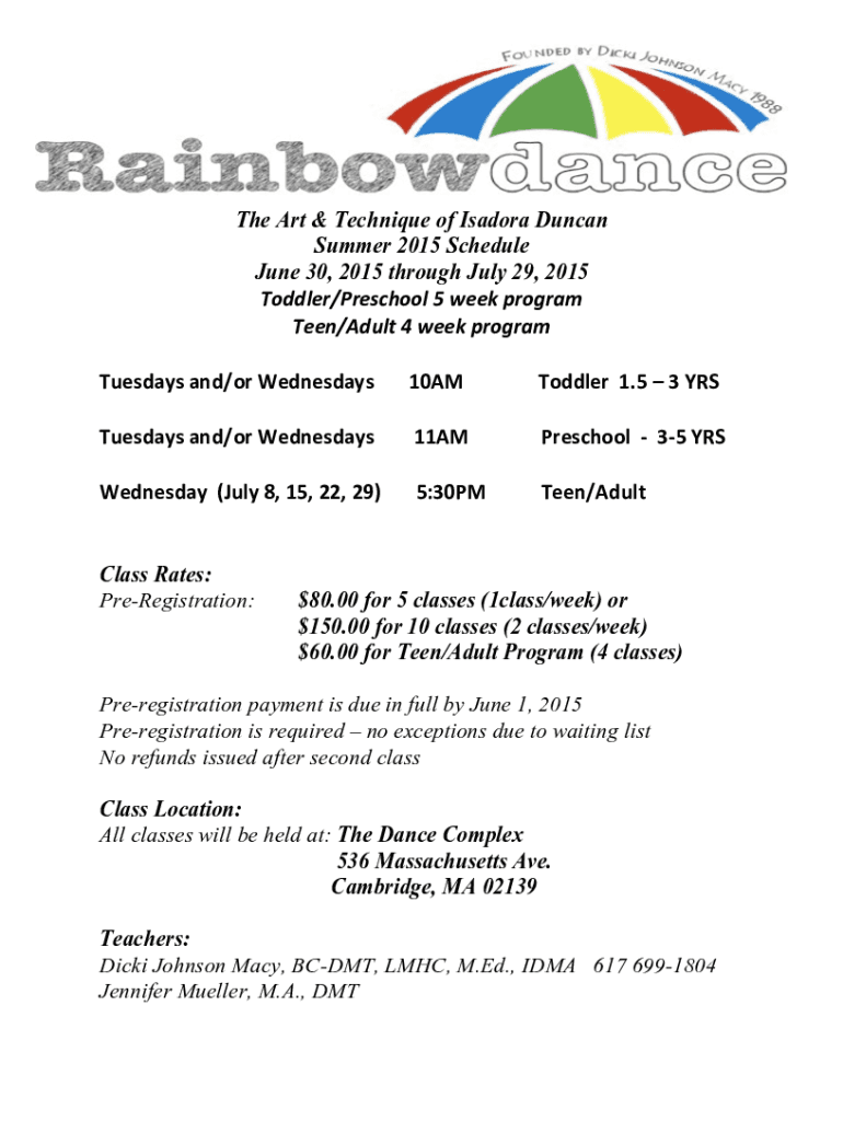 Get the free The Art & Technique of Isadora Duncan Summer 2015 Schedule ...