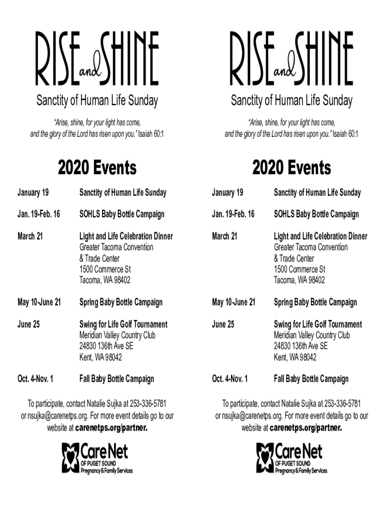 Sanctity of Human Life SundaySanctity of Human Life SundayArise, shine, for your light has come, and the glory of the Lord has risen upon you. Isaiah 60:1Arise, shine, for your light has come, and