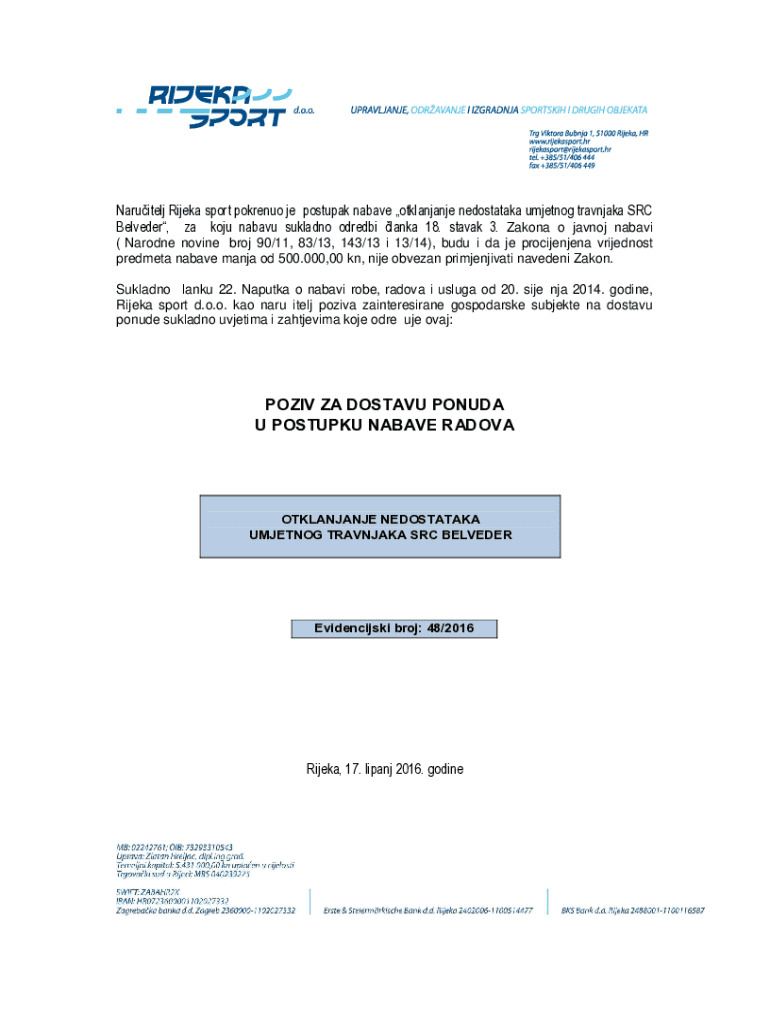 Get the free Naruitelj Rijeka sport pokrenuo je postupak nabave otklanjanje nedostataka umjetnog ...
