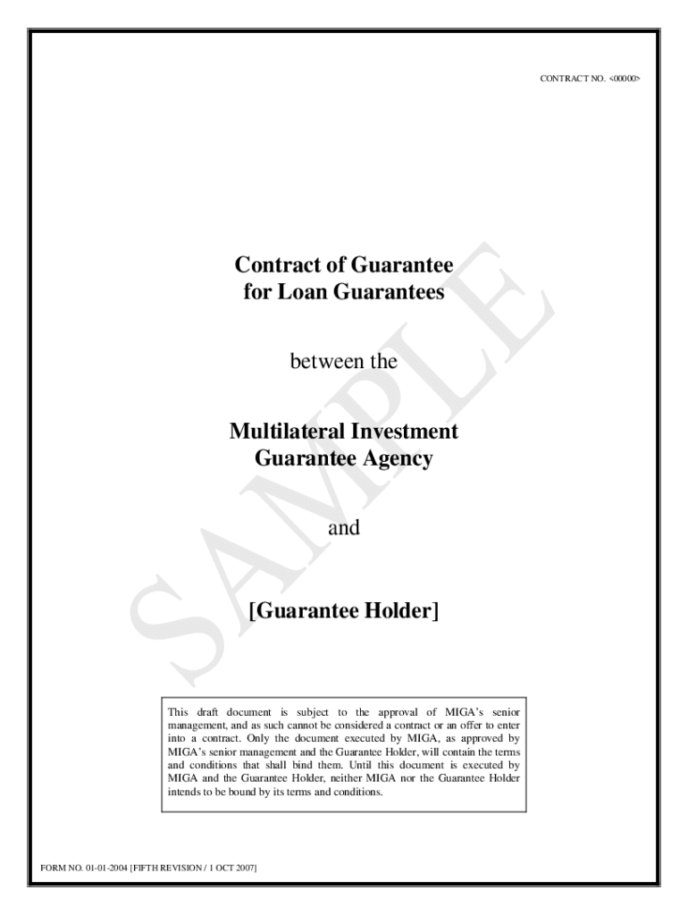 CONTRACT NO. 00000Contract of Guarantee for Loan Guarantees between the Multilateral Investment Guarantee Agency and[Guarantee Holder]This draft document is subject to the approval of MIGAs senior