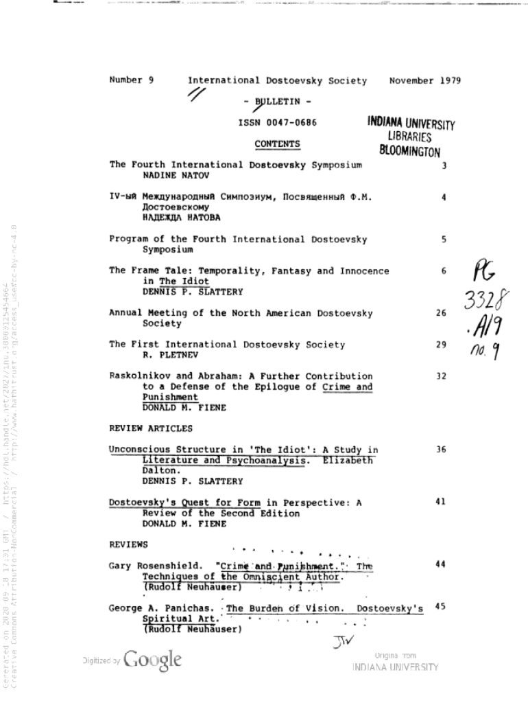 ?.___NumberInternational9Z/Dostoevsky SocietyEJLLETINISSN00470686INDIANA UNIVERSITY