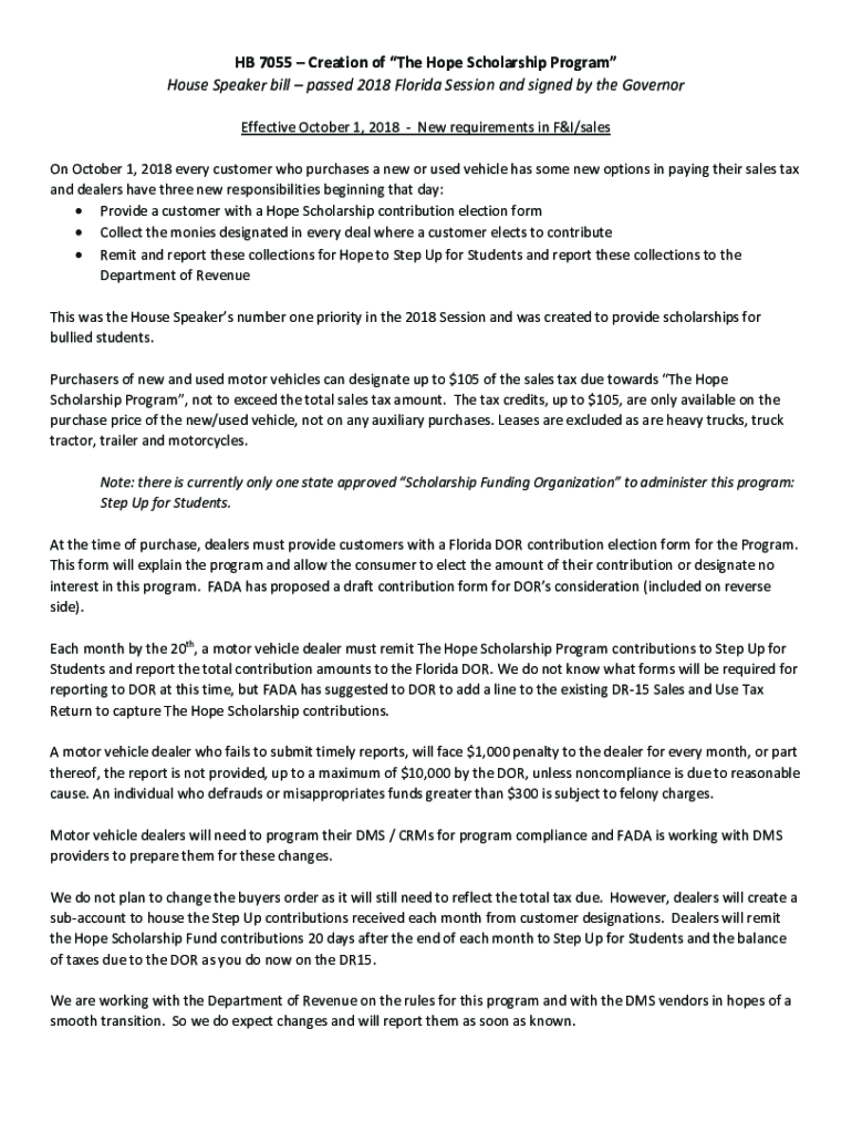 House Speaker bill passed 2018 Florida Session and signed by the Governor