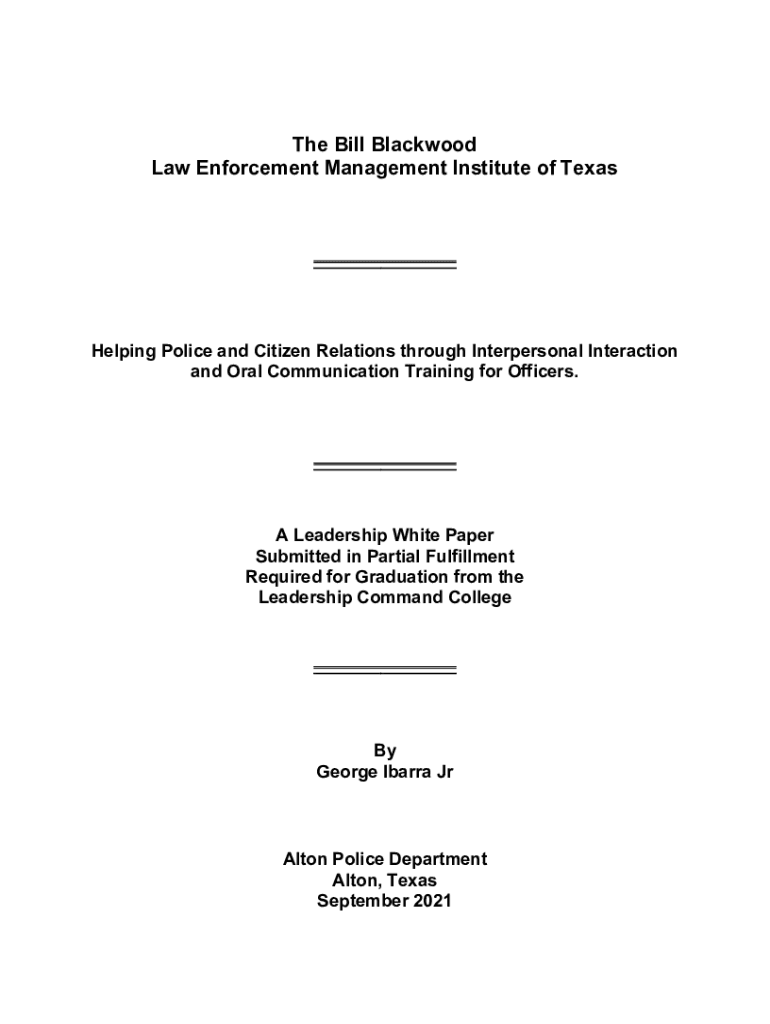 The Bill Blackwood Law Enforcement Management Institute of Texas___Helping Police and Citizen Relations through Interpersonal Interaction and Oral Communication Training for Officers.___A Leadership