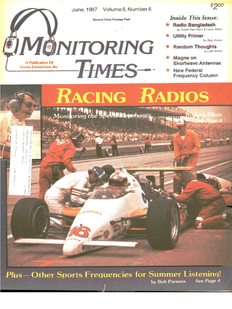 June, 1987$200Volume 6, Number 6Inside This Issue:Second Class Postage PaidRadio BangladeshNITORING A Publication Of Grove Enterprises, Inc.TIMES*\"by Gayle Van Horn & Larry Miller*Utility Primer*Random