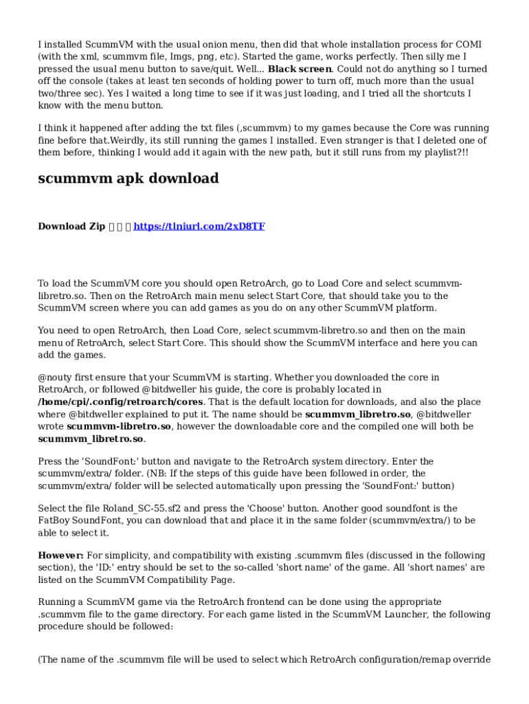 I installed ScummVM with the usual onion menu, then did that whole installation process for COMI (with the xml, scummvm file, Imgs, png, etc). Started the game, works perfectly. Then silly me I pressed