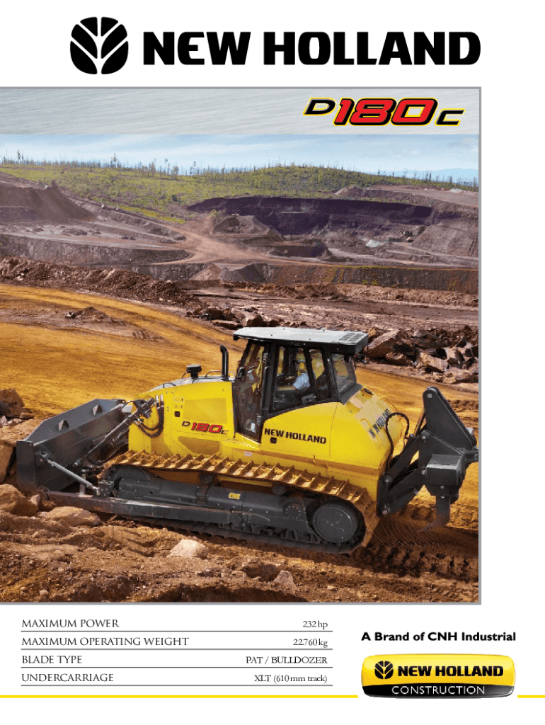 MAXIMUM POWERMAXIMUM OPERATING WEIGHTBLADE TYPE232 hp 22.760 kgPAT / BULLDOZERUNDERCARRIAGEXLT (610 mm track)D180C FIRST TRACK TRACTOR OVER 20 TONS, WITH HYDROSTATIC TRANSMISSION TECHNOLOGY, MANUFACTURED