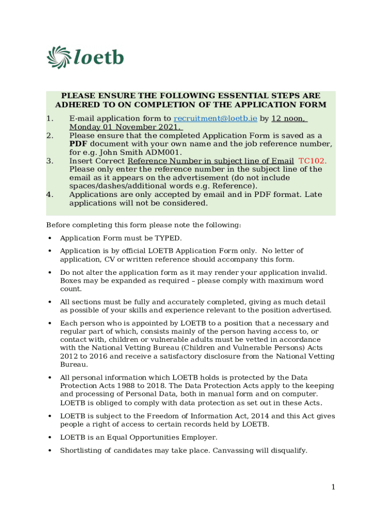 Instructions for the form Insert Correct Reference Number in subject line of EmailTC102