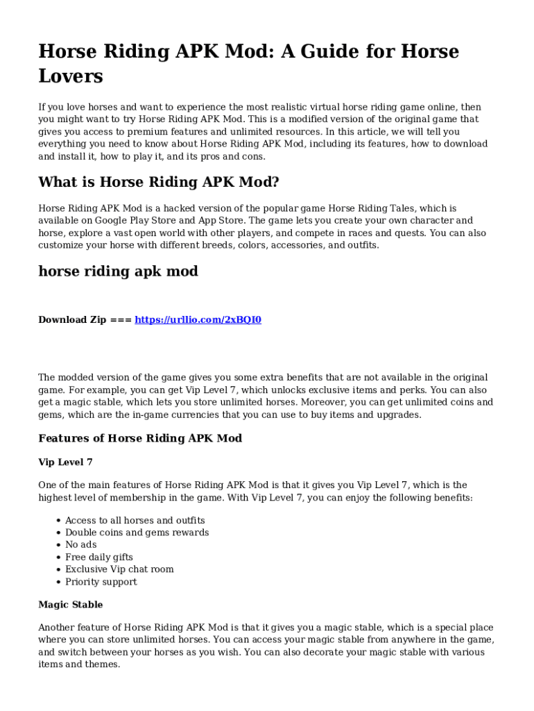 Horse Riding APK Mod: A Guide for Horse Lovers If you love horses and want to experience the most realistic virtual horse riding game online, then you might want to try Horse Riding APK Mod. This