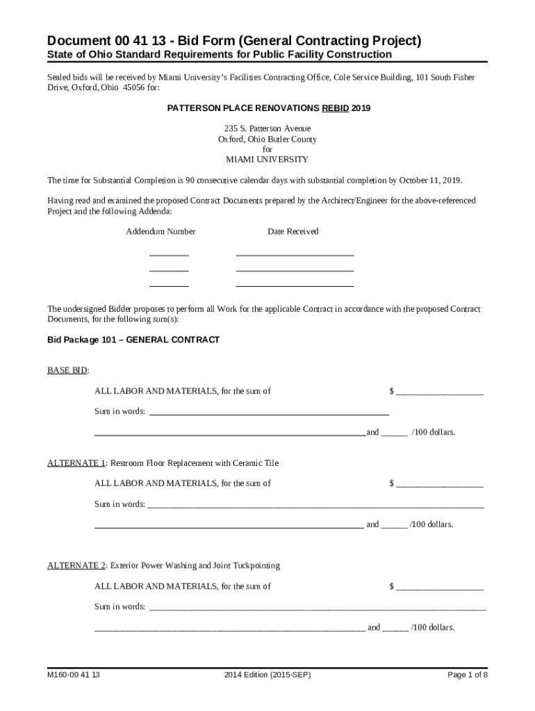 The Laws Hall Interior Office Renovations Addendum 1 - Ohio Bids - pfd muohio is a document that has to be filled-out and signed for specified reasons. Then, it is furnished to the relevant addressee to provide specific info of any kinds. The completion and signing is able manually or via a trusted solution e. g. PDFfiller. These tools help to complete any PDF or Word file online. It also lets you customize its appearance for the needs you have and put an official legal e-signature. Once finished, you send the Laws Hall Interior Office Renovations Addendum 1 - Ohio Bids - pfd muohio to the respective recipient or several recipients by email and also fax. PDFfiller has got a feature and options that make your blank printable. It offers different options when printing out appearance. It does no matter how you'll distribute a document - in hard copy or by email - it will always look well-designed and firm. To not to create a new writable document from the beginning every time, make the original document into a template. After that, you will have a customizable sample.