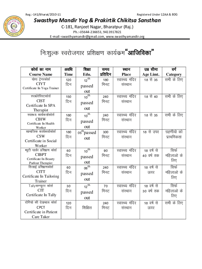 Get the free Registered Under 12AA & 80G - Swasthya Mandir Sansthan