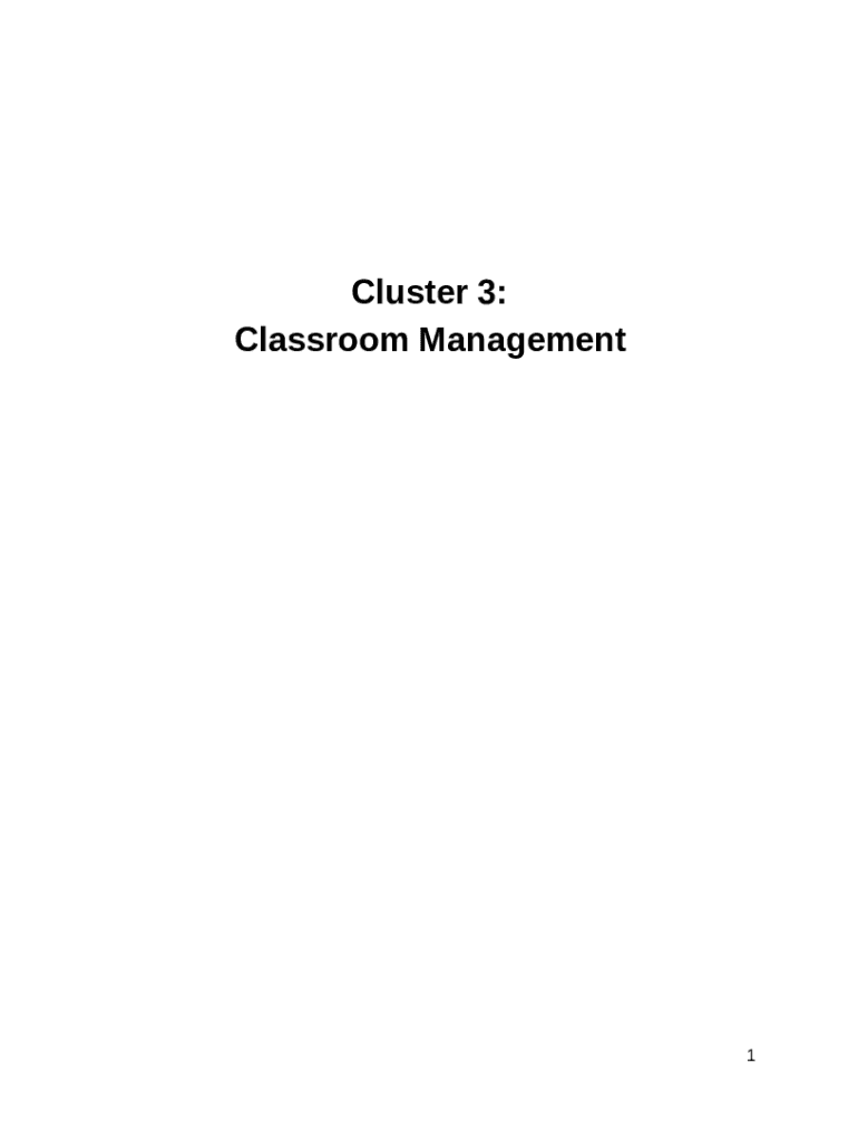 Cluster 3: Classroom Management1Table of ContentsWhats Cluster 3 All About?3Guiding Questions and Overarching Goal5What Does Cluster 3 Look Like & Sound Like in a Classroom?6Pre & Post Assessment