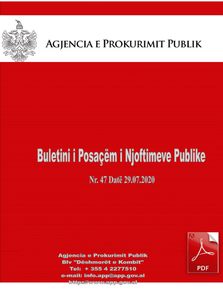 Buletini i Posam Nr. 47 dat 29 Korrik 2020Agjencia e Prokurimit PublikKREU I PAR Buletini i Prokurimit PublikBulevardi Dshmort e Kombit, Kshilli i MinistraveTel.+ 355 4 22 77 510https://www.app.gov.al2/85Buletini