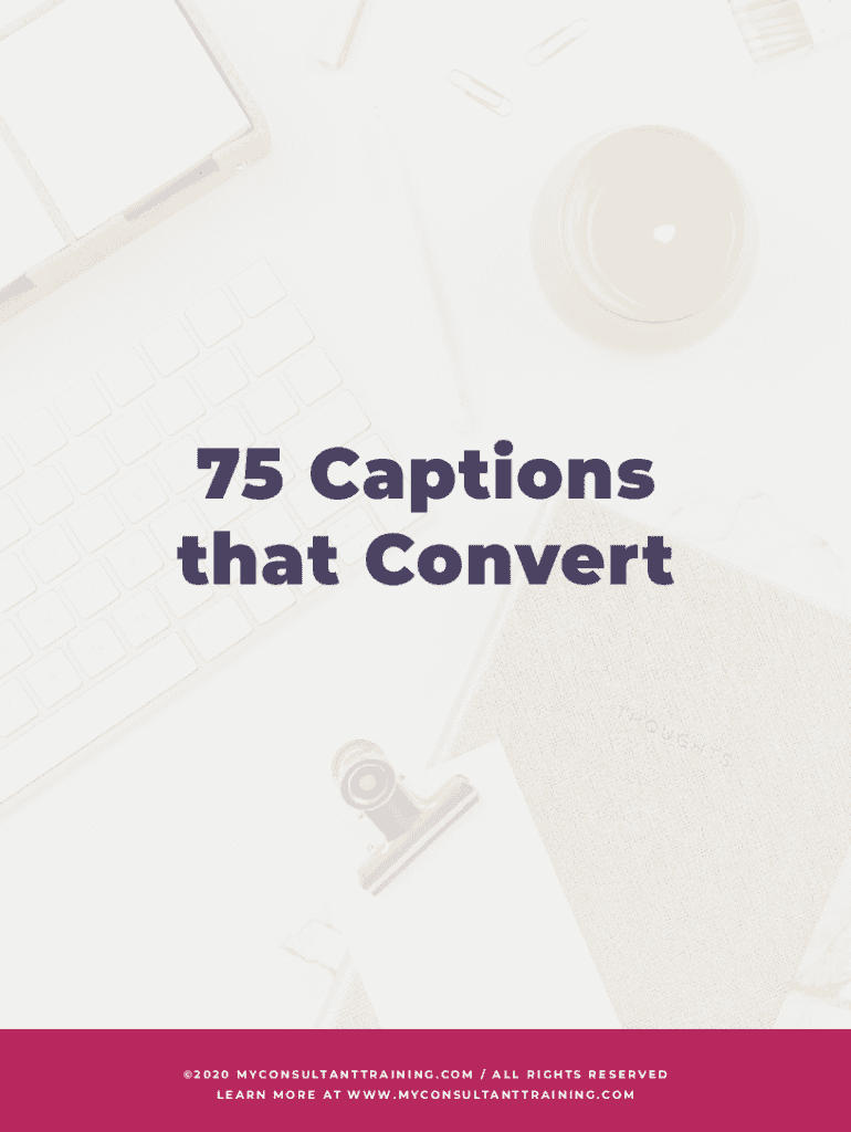 75 Captions that Convert 2 0 2 0 M YC O N S U LTA N T T R A I N I N G . C O M / A L L R I G H T S R E S E R V E D T IW ON VA EN RTTR A1I N I N G . C O M LEARN MO7 R 5E CAA T PW WS. MTYHCAOT NCSO UN
