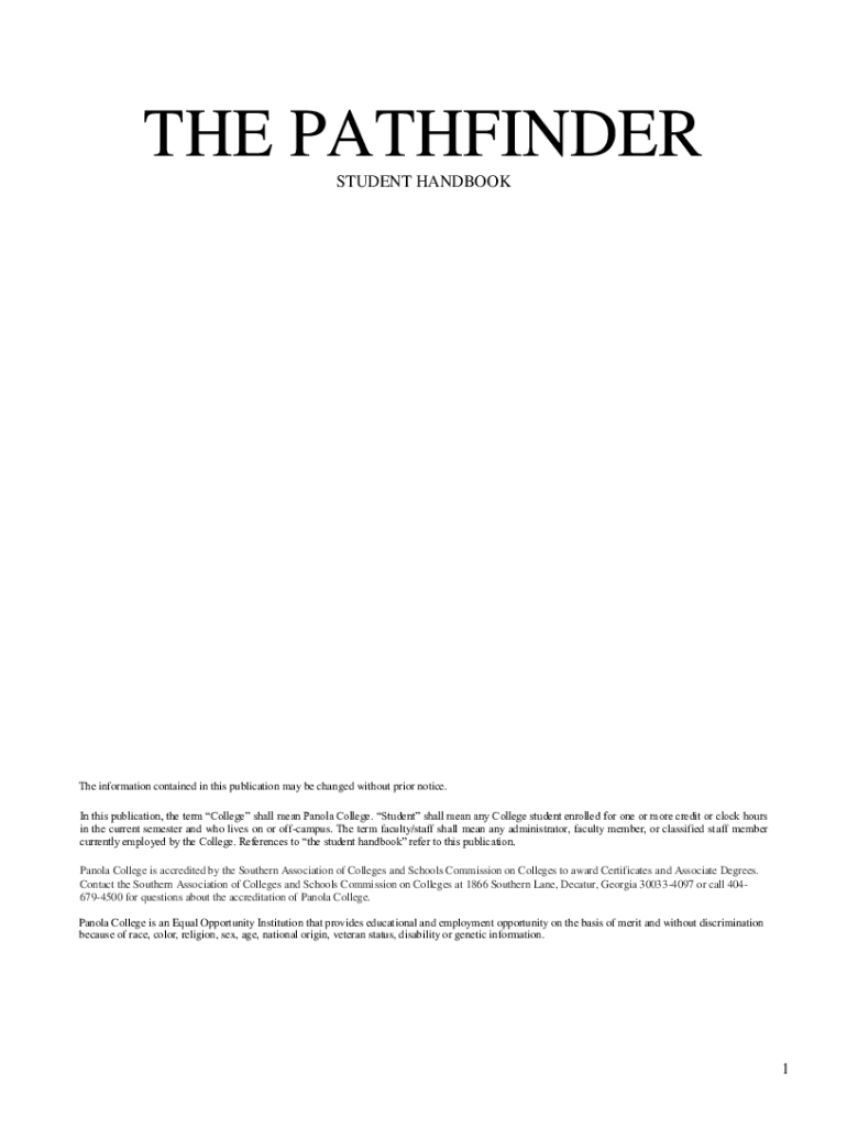 THE PATHFINDER STUDENT HANDBOOKThe information contained in this publication may be changed without prior notice. In this publication, the term College shall mean Panola College. Student shall mean